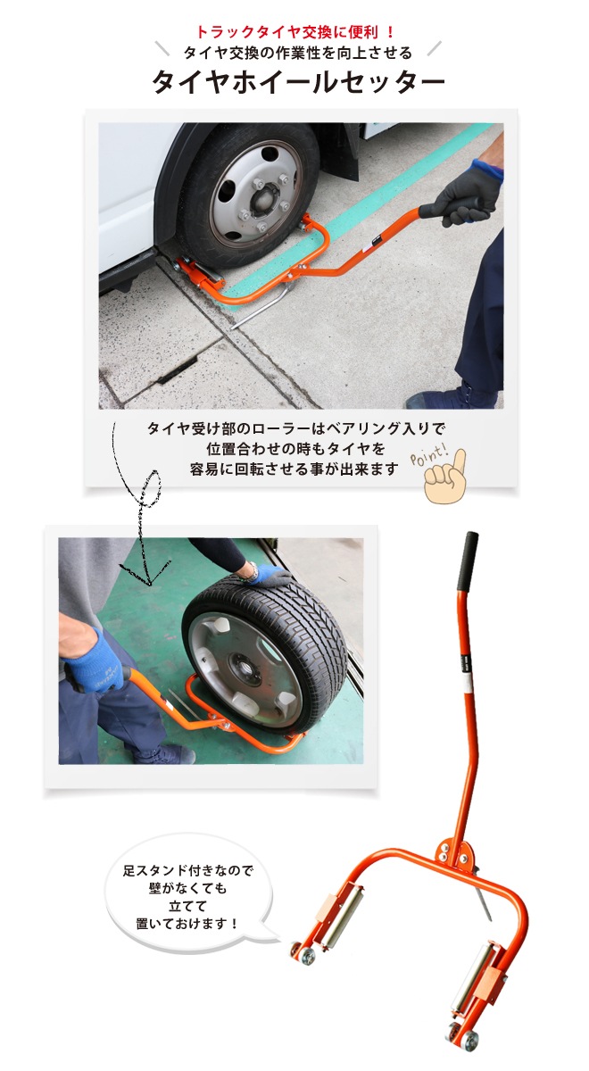 すごいタイヤホイールセッター ! 普通車・RV車・小型トラックなど重いタイヤの交換作業をサポート! しゃがんだり持ち上げたりの作業を楽に! |