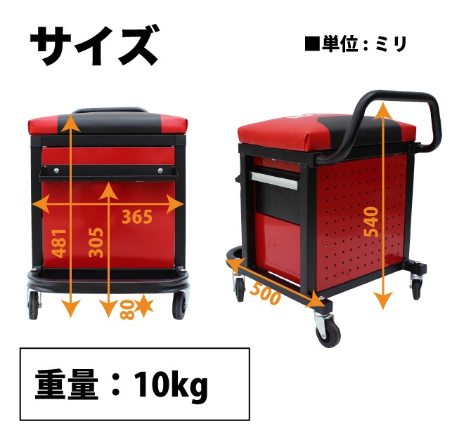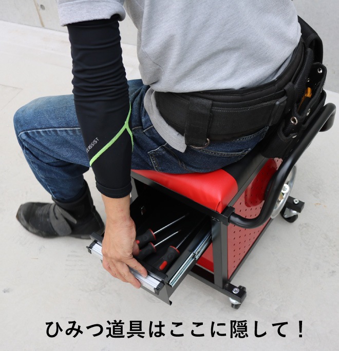 クリーパーシート メカニックシート 作業椅子 左右両引き出し付 ローラーシート 「すご楽」 KIKAIYA
