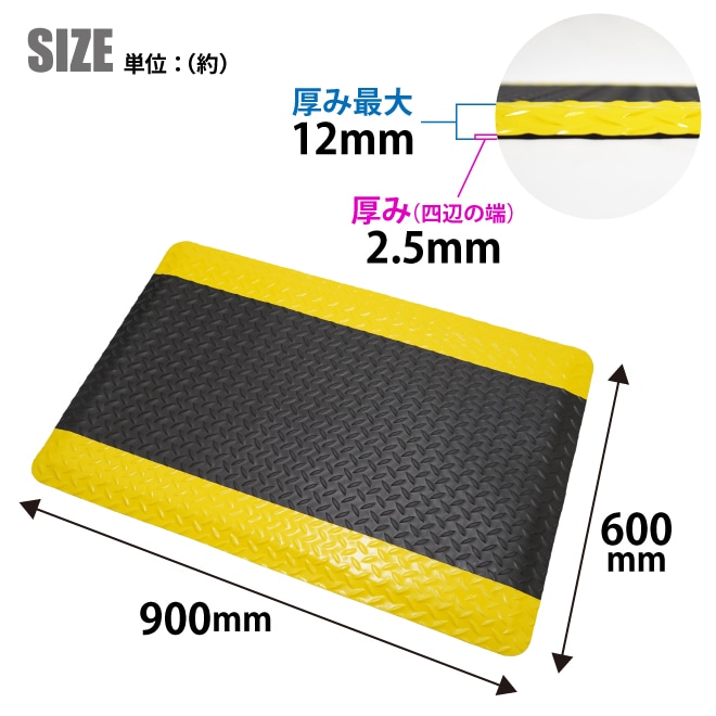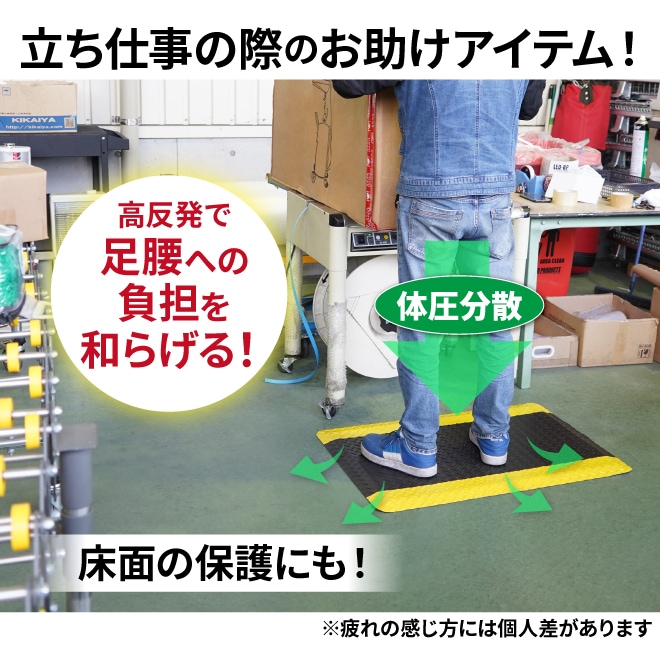 疲労軽減マット 600×900mm 厚み 最大12mm 高耐久 立ち仕事対策 作業マット クッションマット ワークマット 高反発 体圧分散 工場 倉庫 冷え防止 すべり止め KIKAIYA
