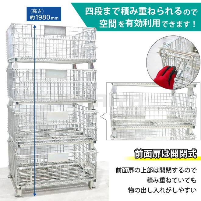 メッシュパレット 中 ショートタイプ 幅1000×奥行800×高さ510mm 業務用 網パレット メッシュボックス パレティーナ KIKAIYA