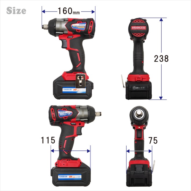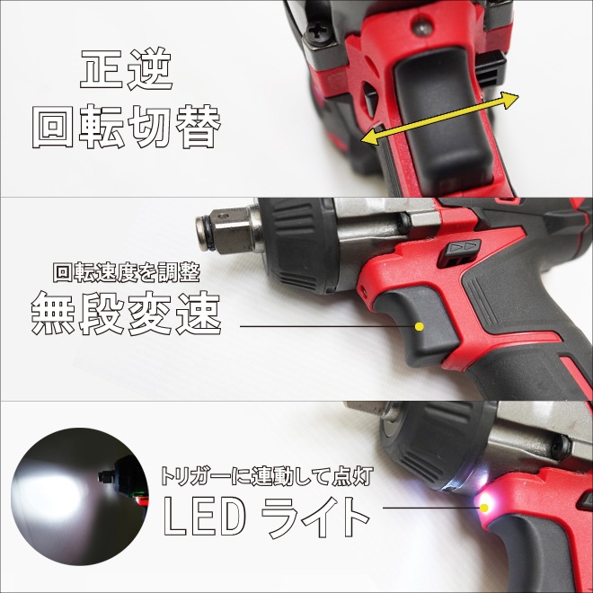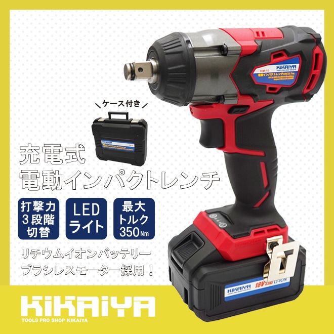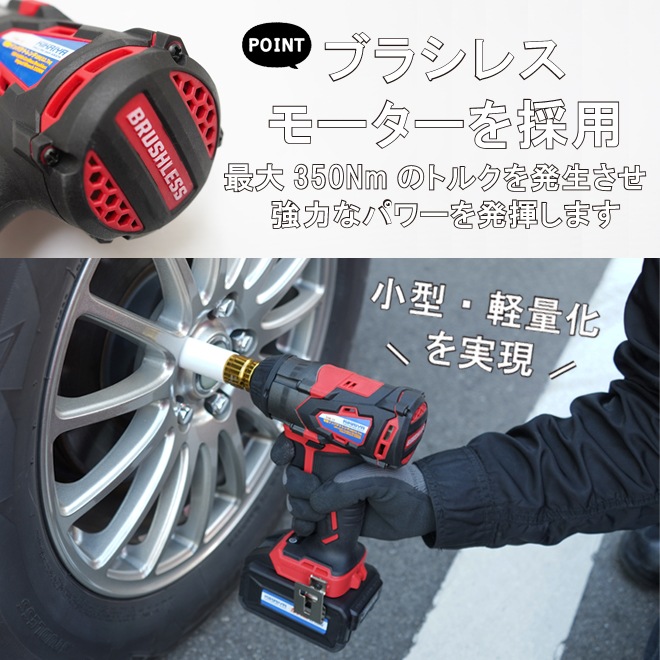 【ソケットプレゼント】電動インパクトレンチ タイヤ交換 充電式 1/2DR(12.7mm)350Nm 18V コードレス ブラシレスモーター リチウムイオンバッテリー 「すご楽」 KIKAIYA