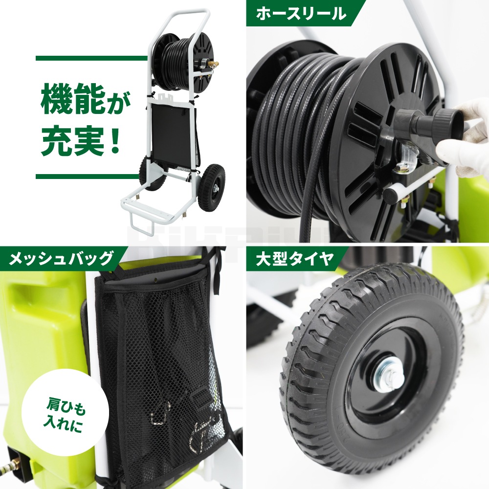 電動噴霧器 台車 リール 20Mホース 20L マキタ式 18V バッテリー別売り 動噴 充電式 コードレス 除草剤 農薬 防虫剤 散布 KIKAIYA