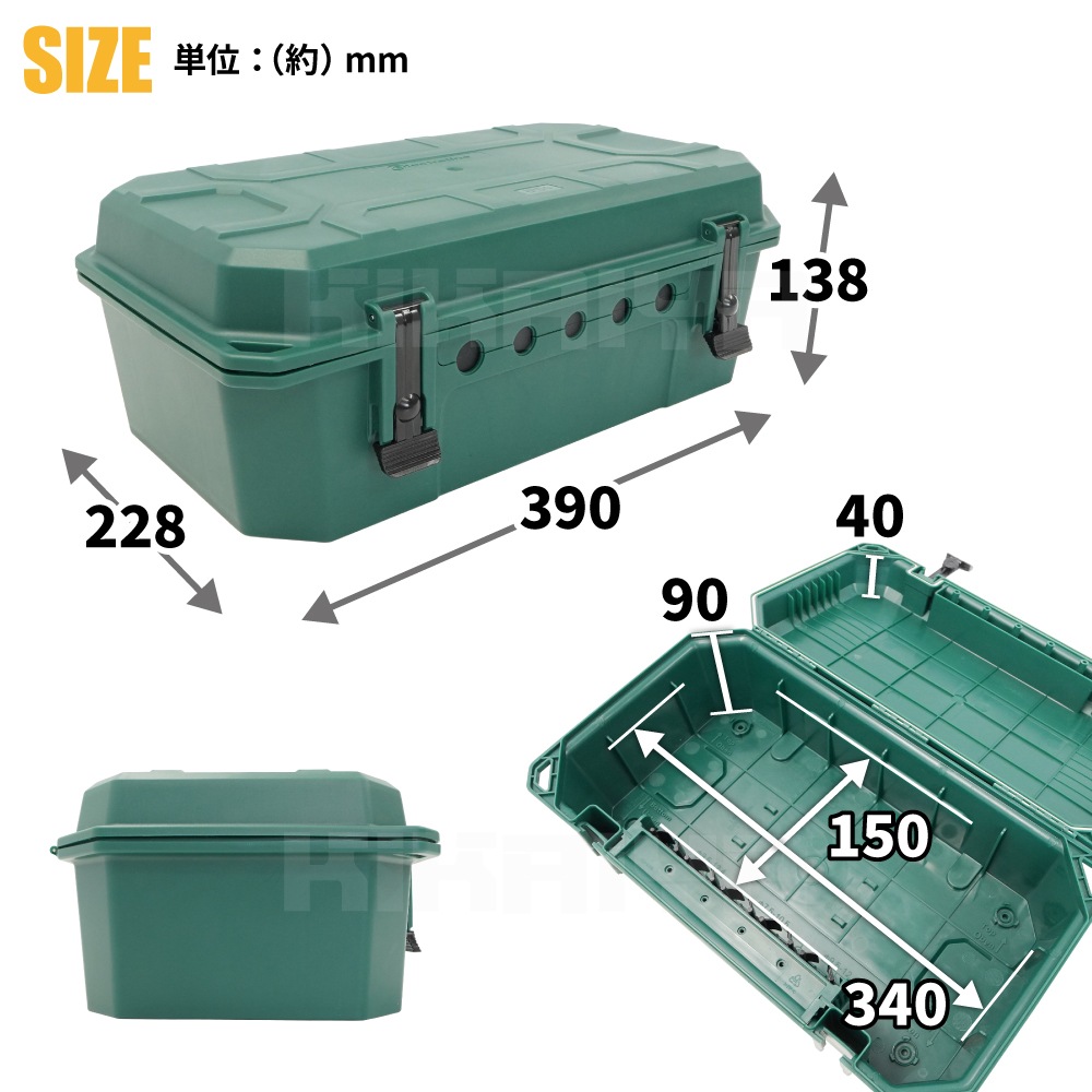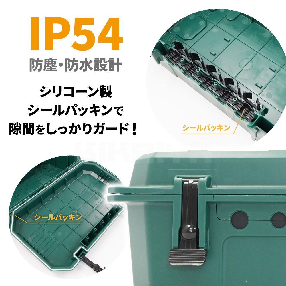 | 材質 | ボックス本体/ポリプロピレン シールパッキン/シリコーン ラッチ・ケーブルクリップ/ポリアミド66 上蓋軸/ステンレス |