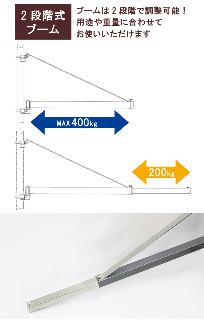 | 最大能力 | 1段階:400kg/2段階(先端部分):200kg |
