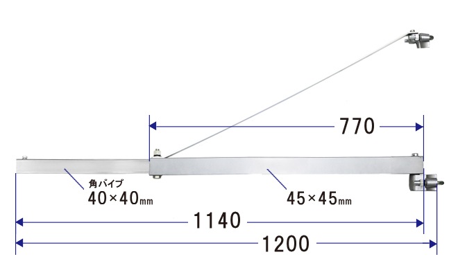 | ブーム角パイプサイズ | 1段階:45mm/2段階:40mm |