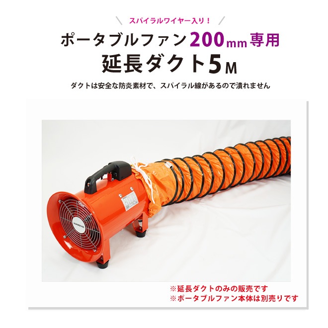 ポータブルファン 送排風ファン 200mm用 延長ダクト 5メートル フレキシブルダクト KIKAIYA