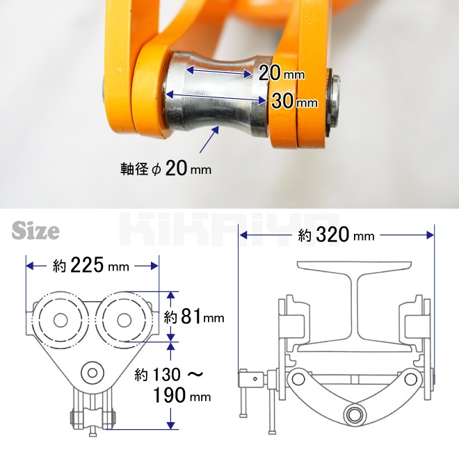 トロリー 2トン クランプ式 ビームトロリー ハイパワー トローリー チェーンブロック用 KIKAIYA