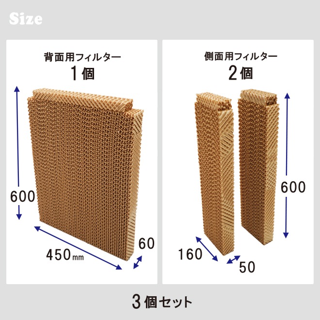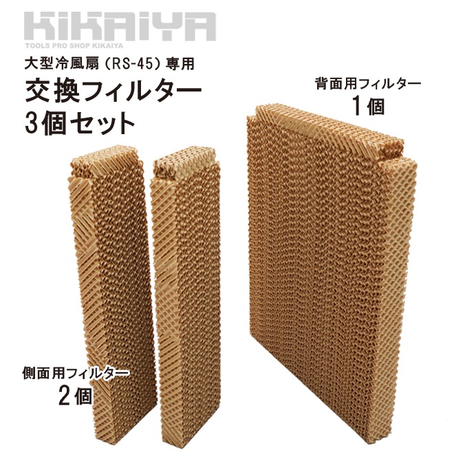 工場扇 大型 冷風扇 35L(RS-45)専用 交換フィルター 3個セット 1台分 (背面用1個/側面用2個) 交換用エレメント クーリングパッド 冷風機 替え 冷却 KIKAIYA
