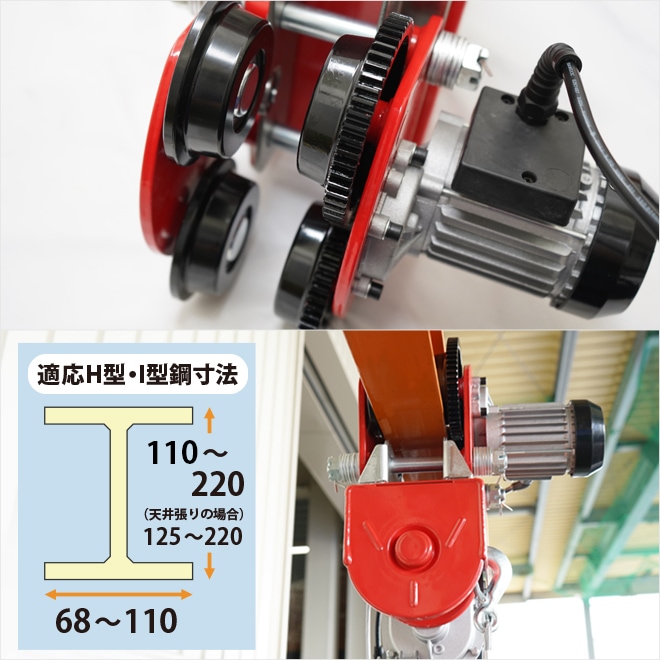 H型鋼やI型鋼で横移動できる電動トロリーと 荷物を吊り上げる電動ホイストの一体機! 用途に合わせてシングル/ダブルフックと切り替えてお使いください リモコン1つで上下(巻き上げ・巻き下げ)、左右移動の操作が可能です リモコン用の電池も付属しているので、届いてすぐに使えます 本体の運転ランプが(緑)になると、リモコン操作できます 5.7mの電源コードは従来品より4倍以上長く、利便性抜群です 万が一、巻き過ぎた場合でも過巻防止リミット付きなので安心です