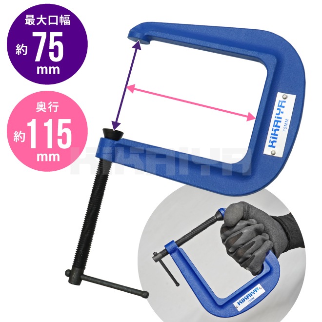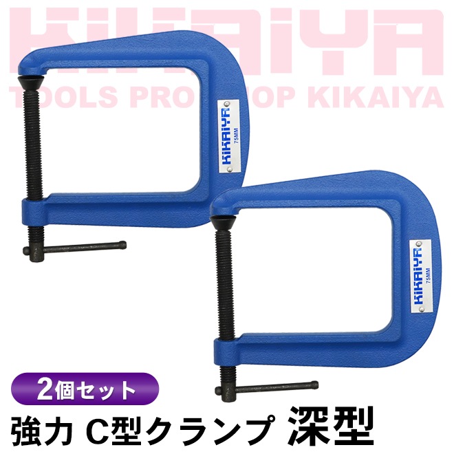 Cクランプ 深型 2個セット 奥行115mm 強力 固定 締め付け シャコ万力 木工 溶接 穴あけ 接着 KIKAIYA