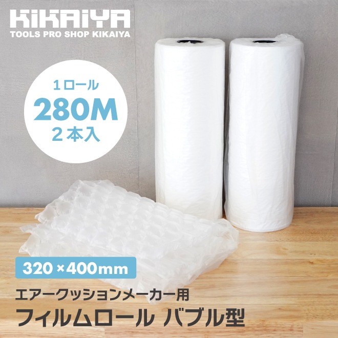 エアークッション フィルム ロール バブル型 320×400mm 280M巻 2本入 緩衝材 梱包材 エアークッションメーカー用 20μm KIKAIYA