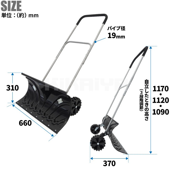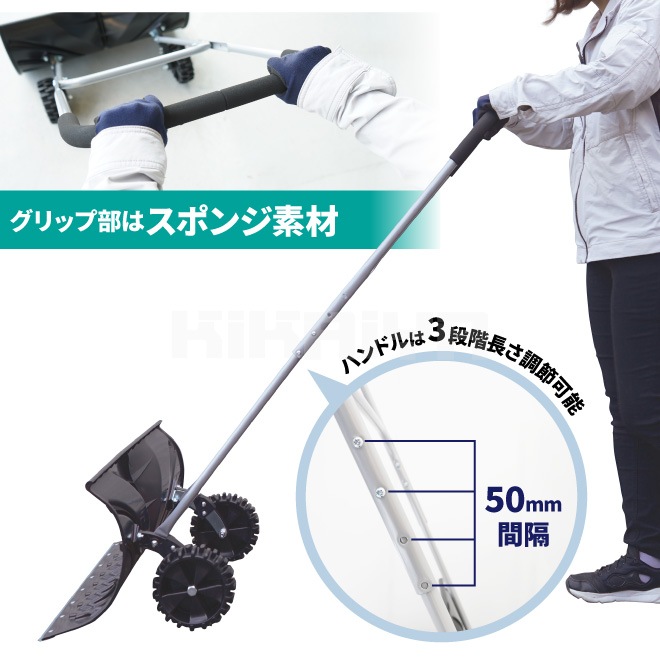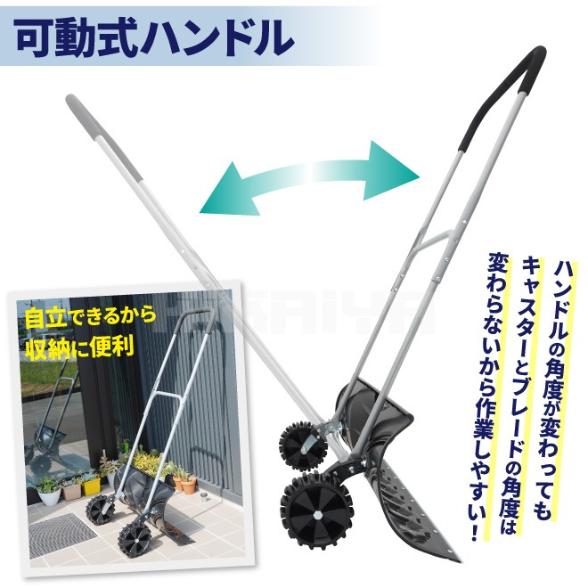雪かきプッシャー キャスター付き 大型車輪 スコップ スノープッシャー 除雪 家庭用 スノーダンプ 冬 ショベル シャベル 軽量 KIKAIYA