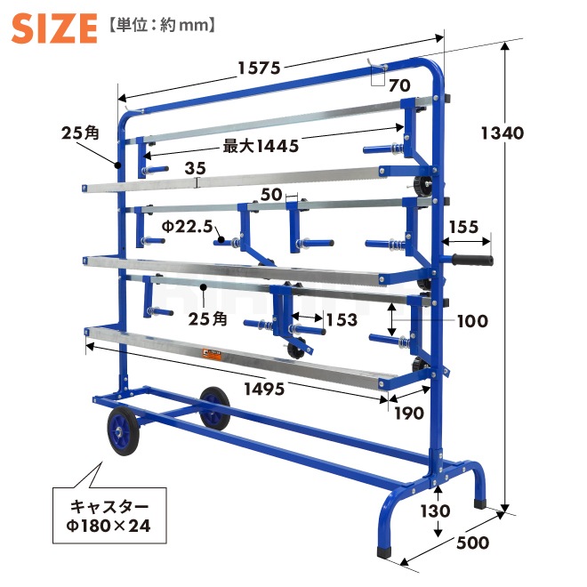 | 適合ロールサイズ | 直径/200mm以下 幅/300~1200mm 芯内径/23mm以上 |