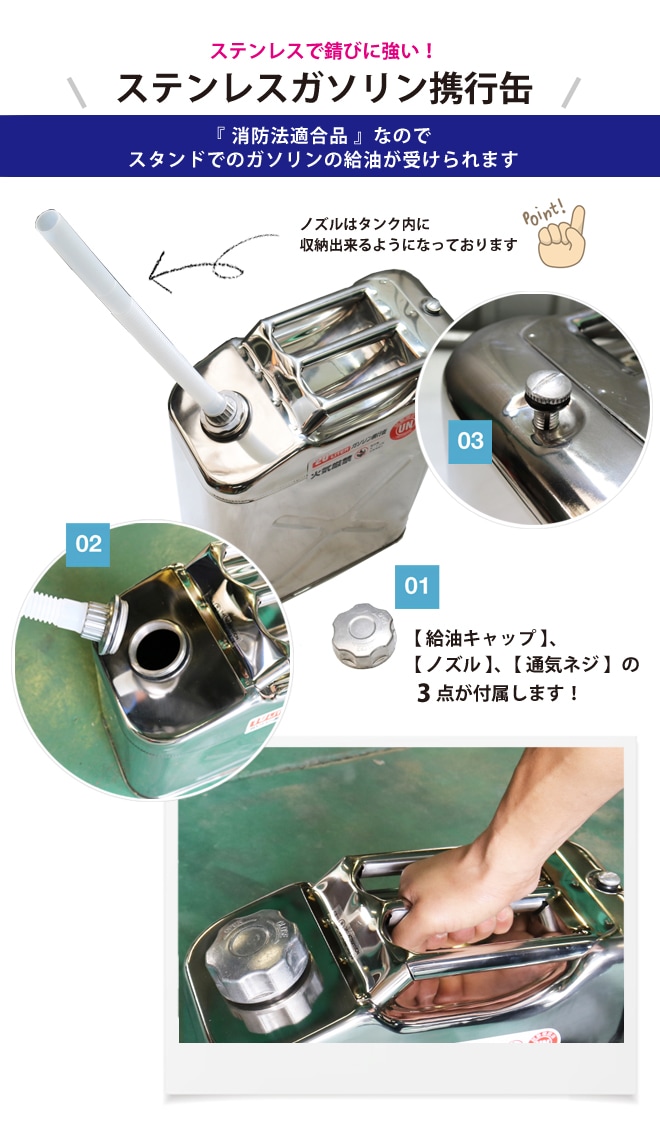 ガソリン携行缶 20L ステンレス 2個セット SUS304 縦型 高級 ガソリンタンク ジェリカン 消防法適合品 KIKAIYA