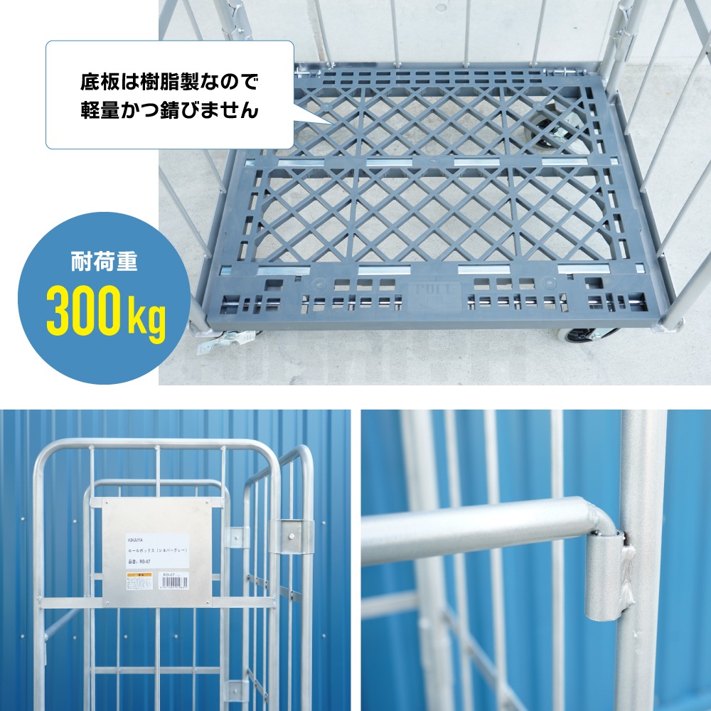 ロールボックスパレット カーゴテナー カゴ台車 W850×D650×H1700mm 耐荷重300kg 業務用 シルバーグレー 折りたたみ ハイテナー 底板樹脂タイプ 【10台セット】 KIKAIYA
